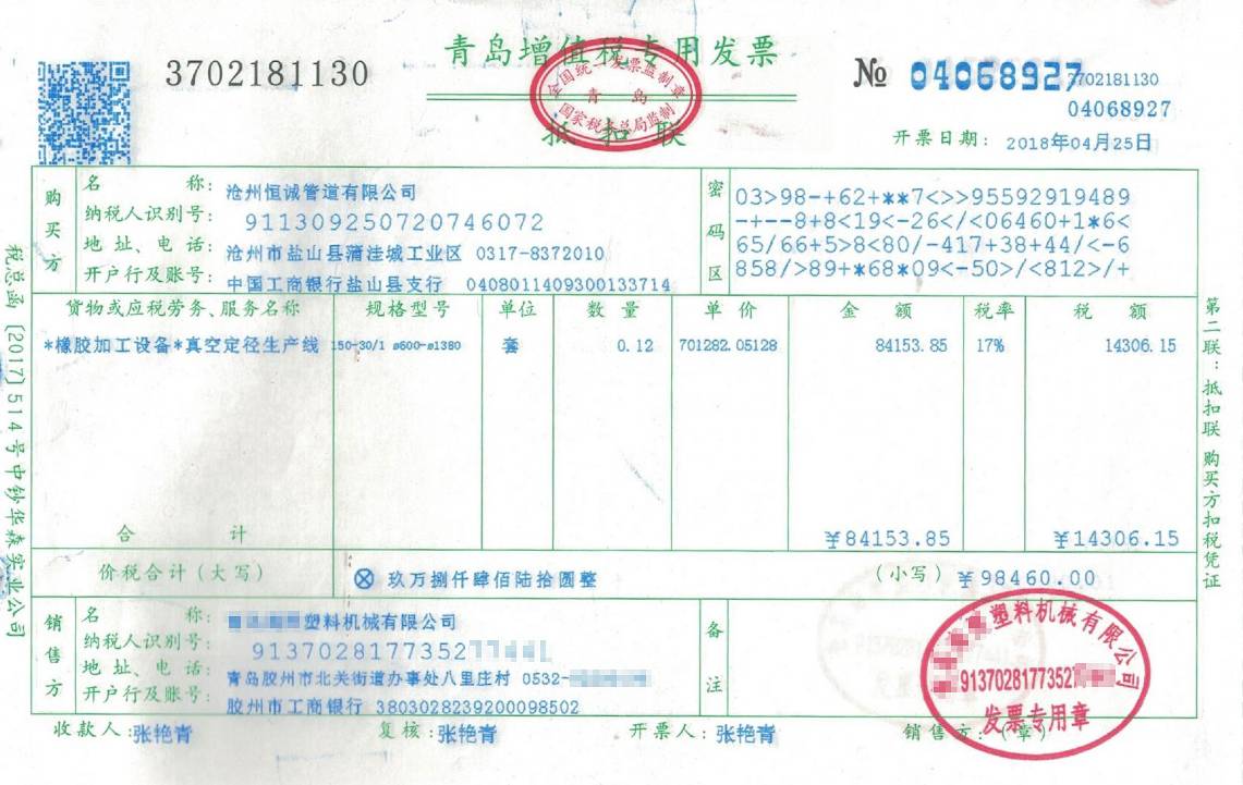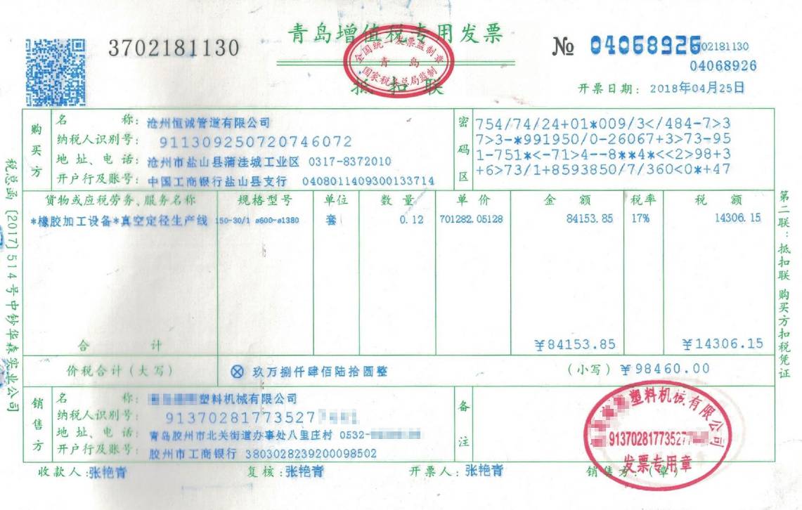 保溫皮套管擠出機設備發(fā)票