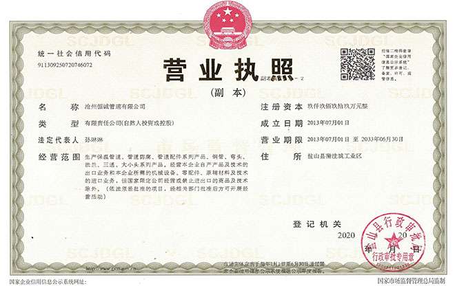 恒誠(chéng)管道有限公司座落于中國(guó)管道裝備制造業(yè)基地。北依京津、東臨黃驊港,京滬鐵路、京滬高速、石黃高速、津汕高速、104、307、205國(guó)道分布于周或穿與境內(nèi),地理位置得天獨(dú)厚,交通運(yùn)輸極為方便;公司配備專業(yè)的管道設(shè)計(jì)人 、高技技工、生產(chǎn)和產(chǎn)品檢驗(yàn)人員。
