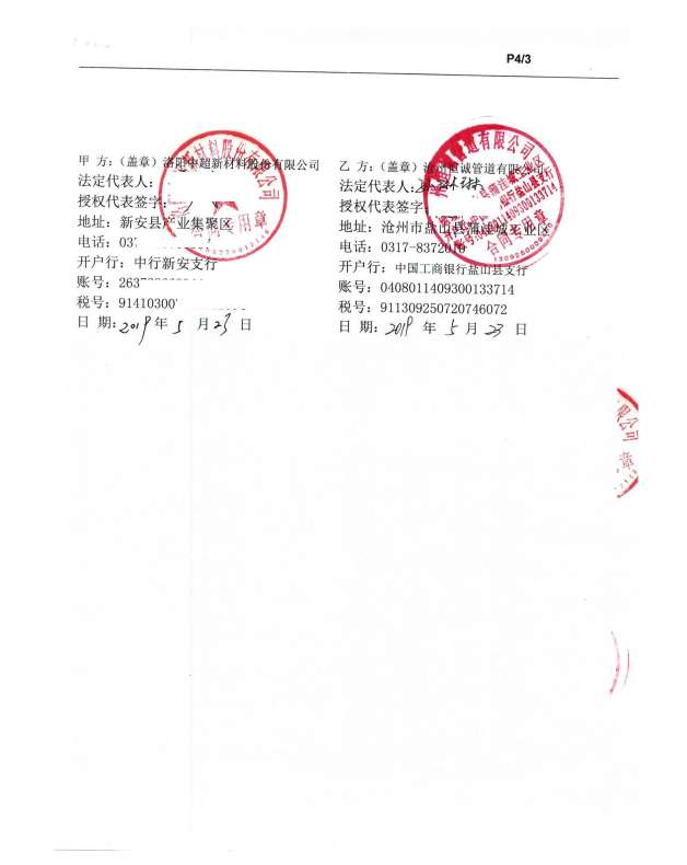 洛陽中超新材料股份有限公司與我公司達成鋼套鋼保溫鋼管合作協(xié)議,我們以最優(yōu)質(zhì)的產(chǎn)品質(zhì)量,回饋客戶對我們的信賴,恒誠管道將一如既往專注保溫管道的生產(chǎn)與研發(fā)回饋廣大客戶。